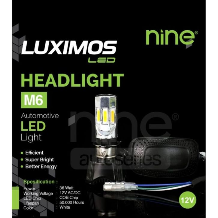 LAMPU LED UTAMA MOTOR H4 H6 H7 NINE LUXIMOS M6 AC DC 6 SISI 36WAT SUPER TERANG