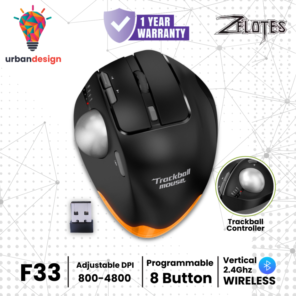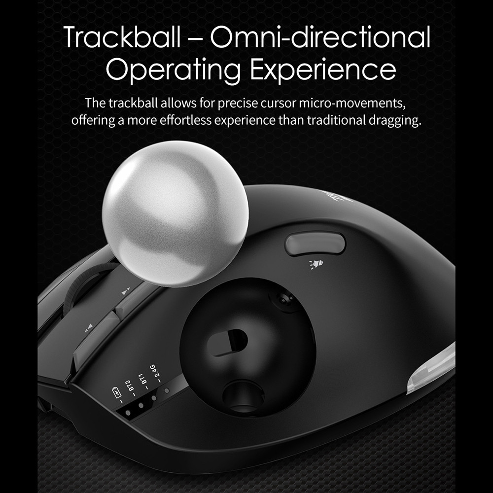 Zelotes F33 Ergonomic Wireless Mouse Trackball Bluetooth 2.4G 8 Button Programmable Rechargable