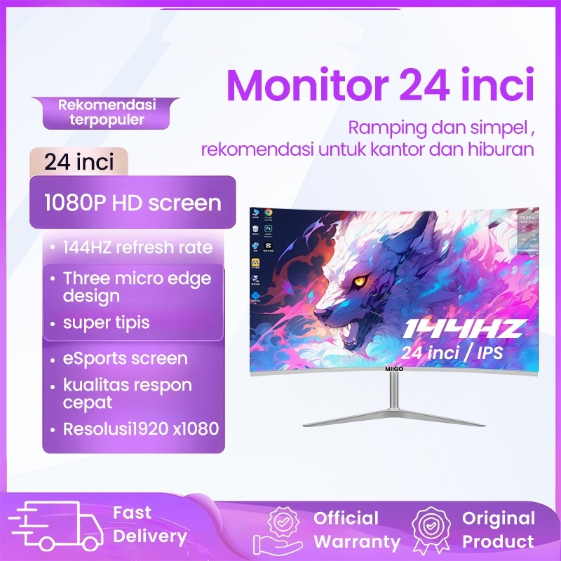 Monitor Game Profesional, Monitor 24 Inci, Tampilan Lengkung, Panel IPS, (144HZ/165HZ) Kecepatan Refresh