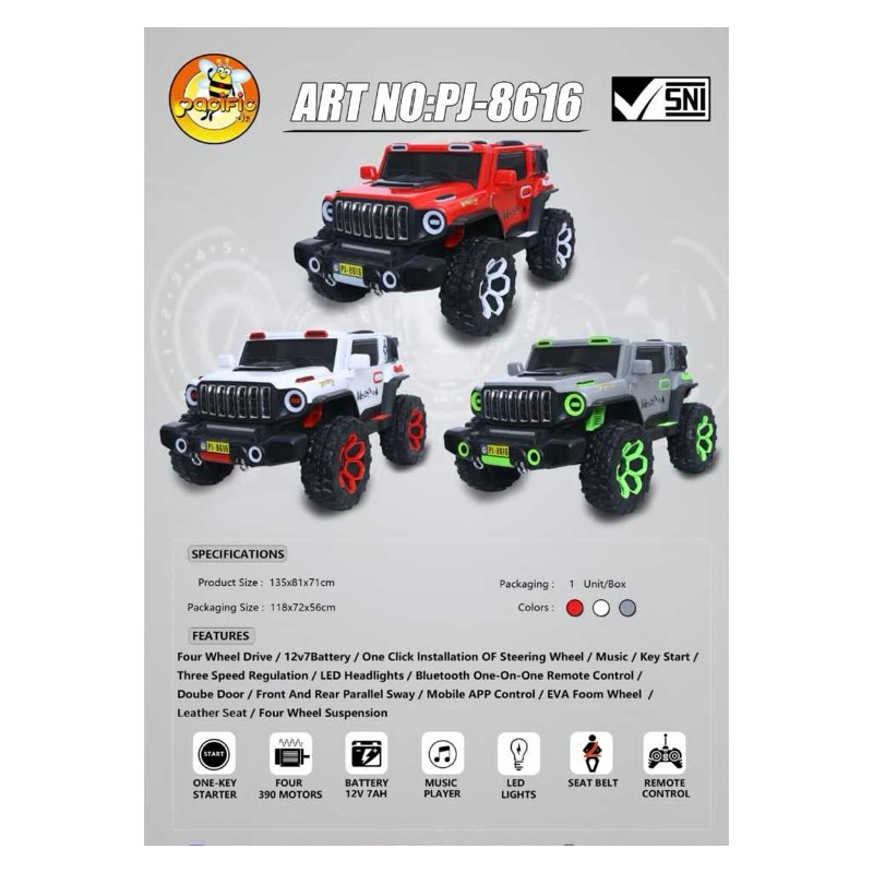 mobil aki anak jumbo Jeep Pacific PJ 8616 Premium Ban Karet mobilan anak bisa dinaiki mobil remote control besar aki