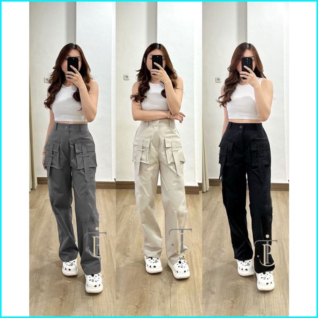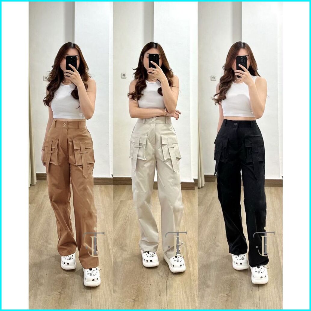 Yura Cargo Wanita Cargo Pant Pocket Celana Kargo Wanita Casual