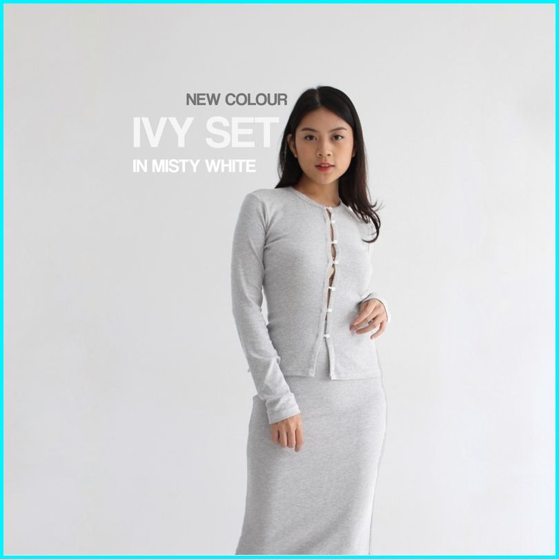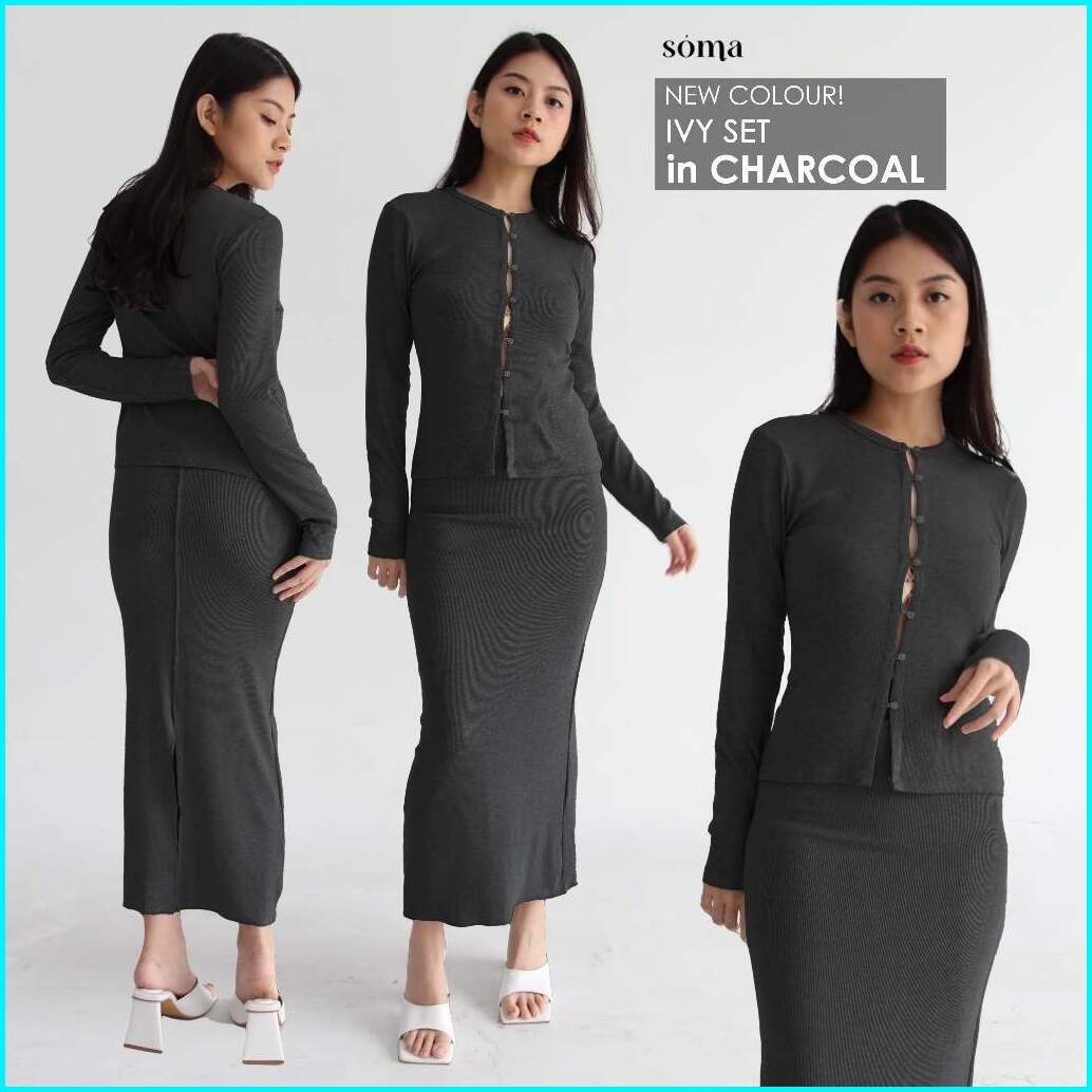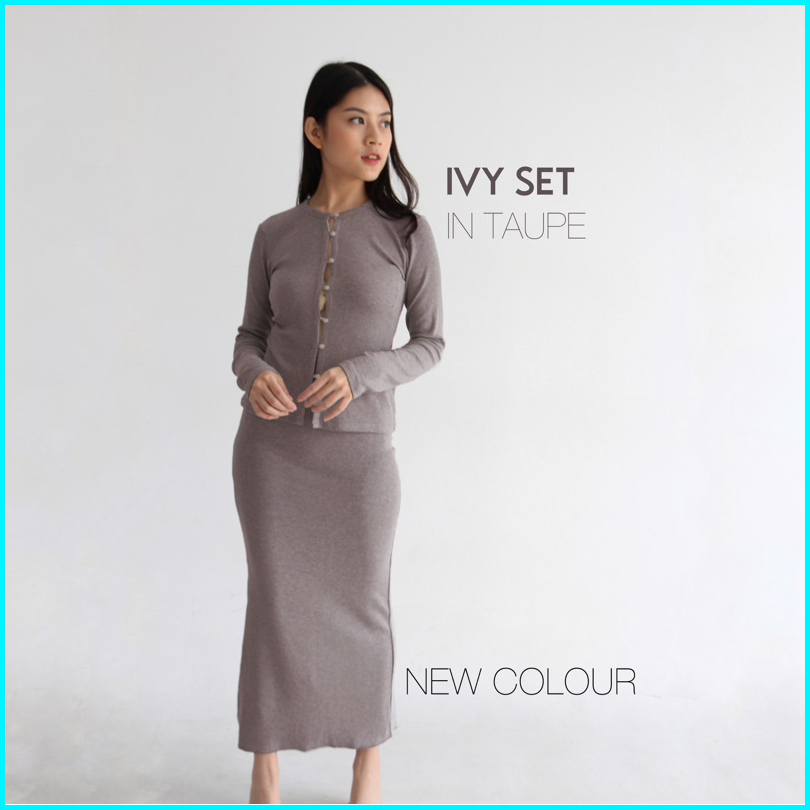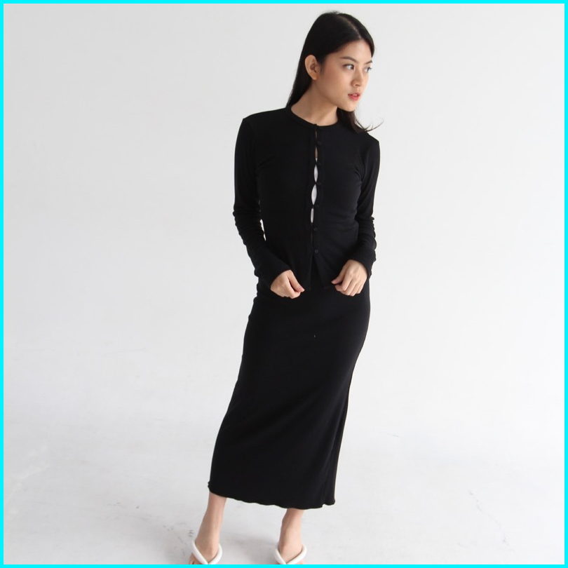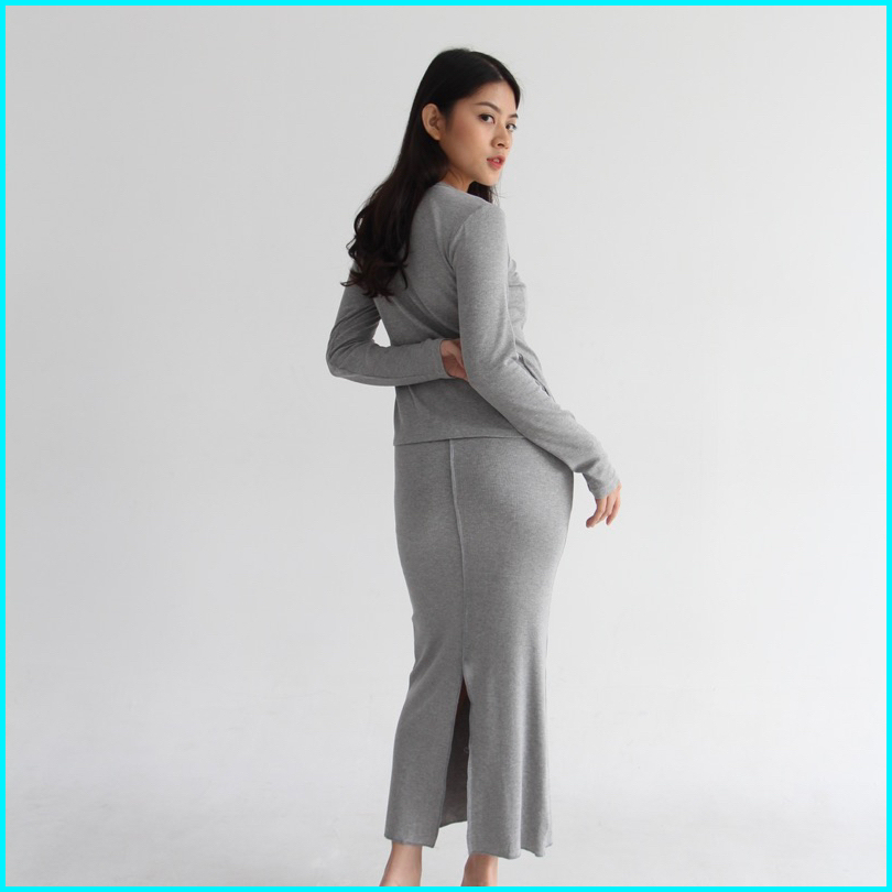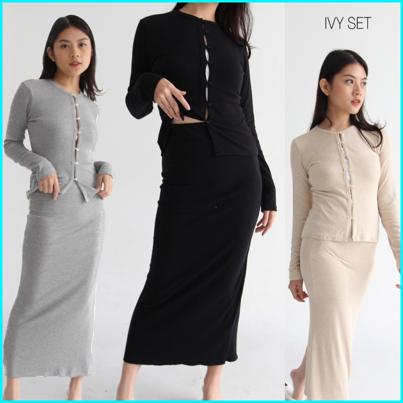 Ivy Set - Setelan Skirt Wanita Longsleeves Knit Set Top Oneset Rok Wanita Ribbed Knit Atasan Tangan Panjang Wanita Soma
