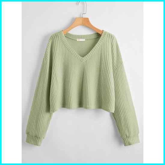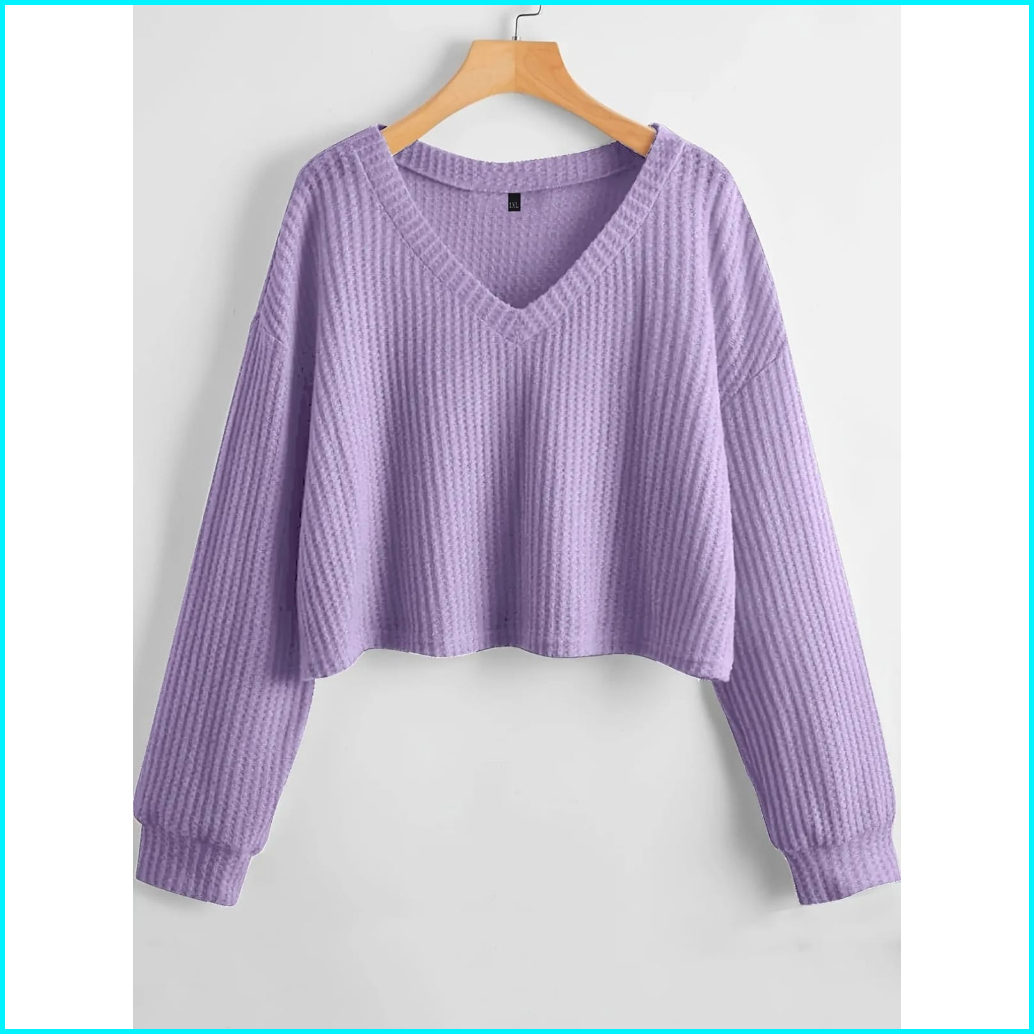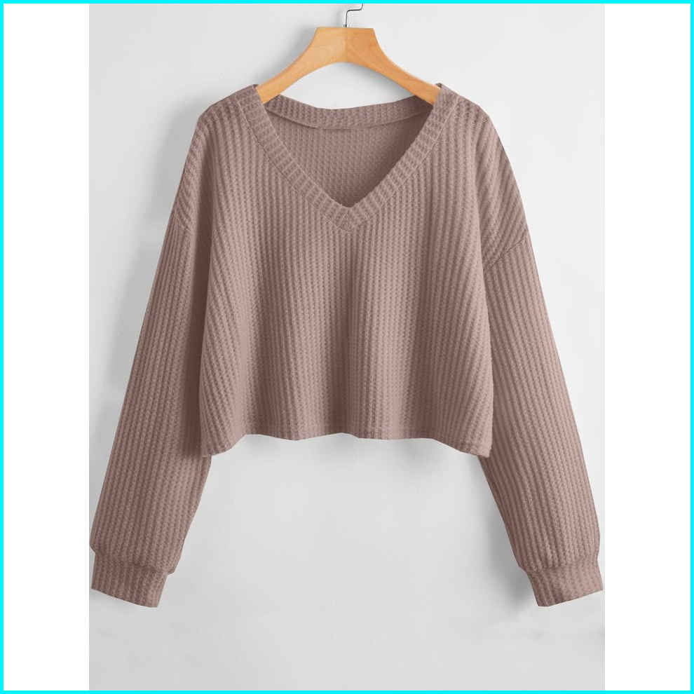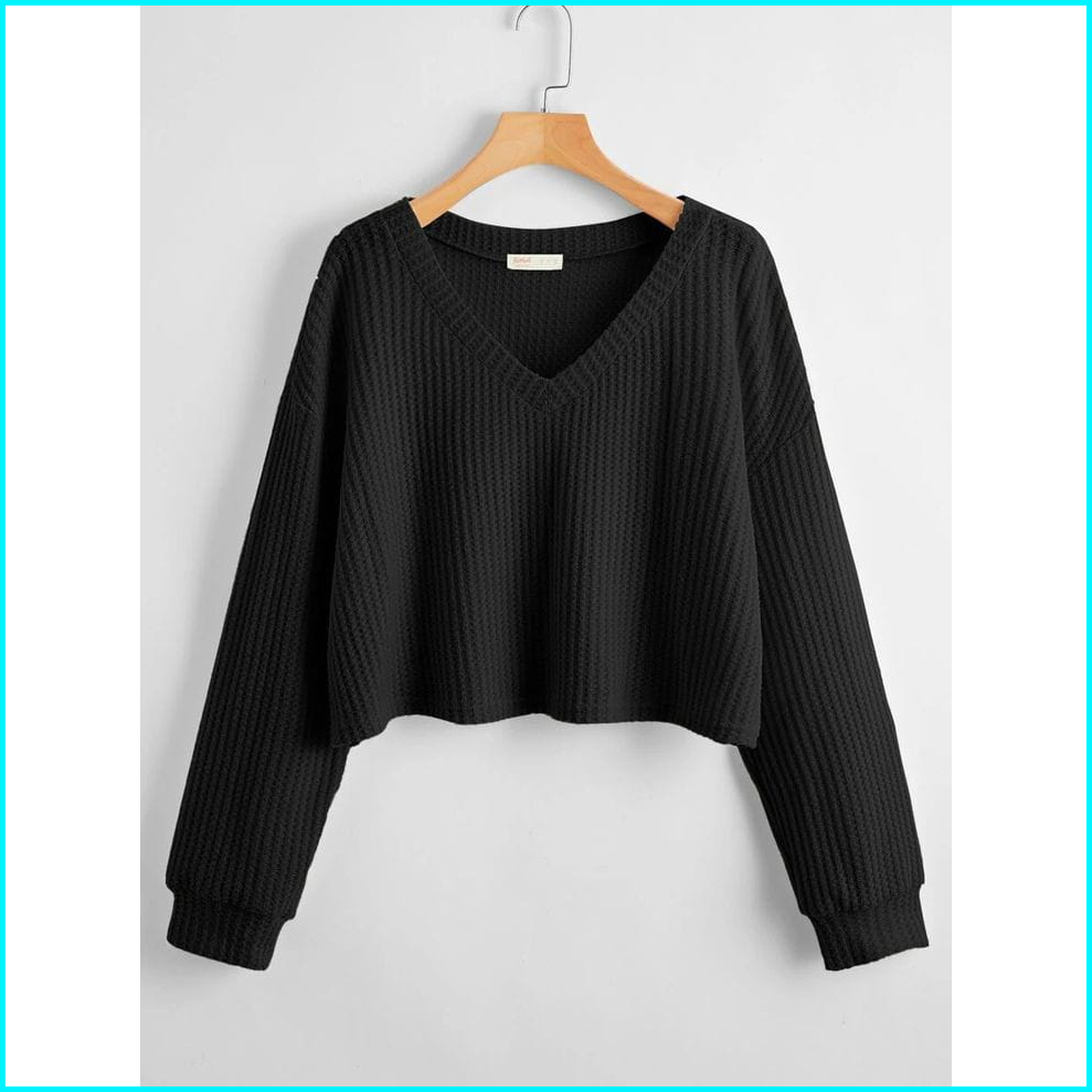 Sweater Wanita Crop Waffle Rajut Korean Style