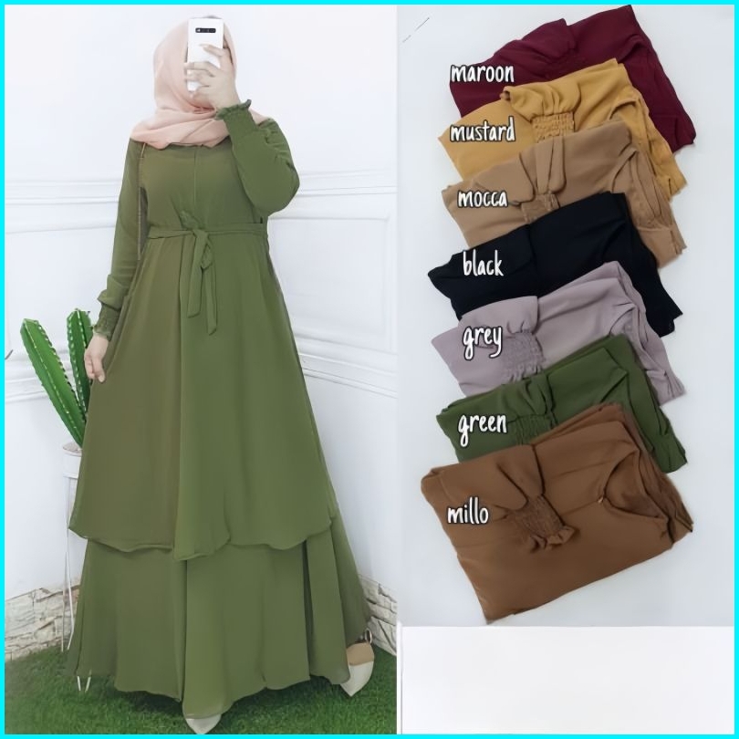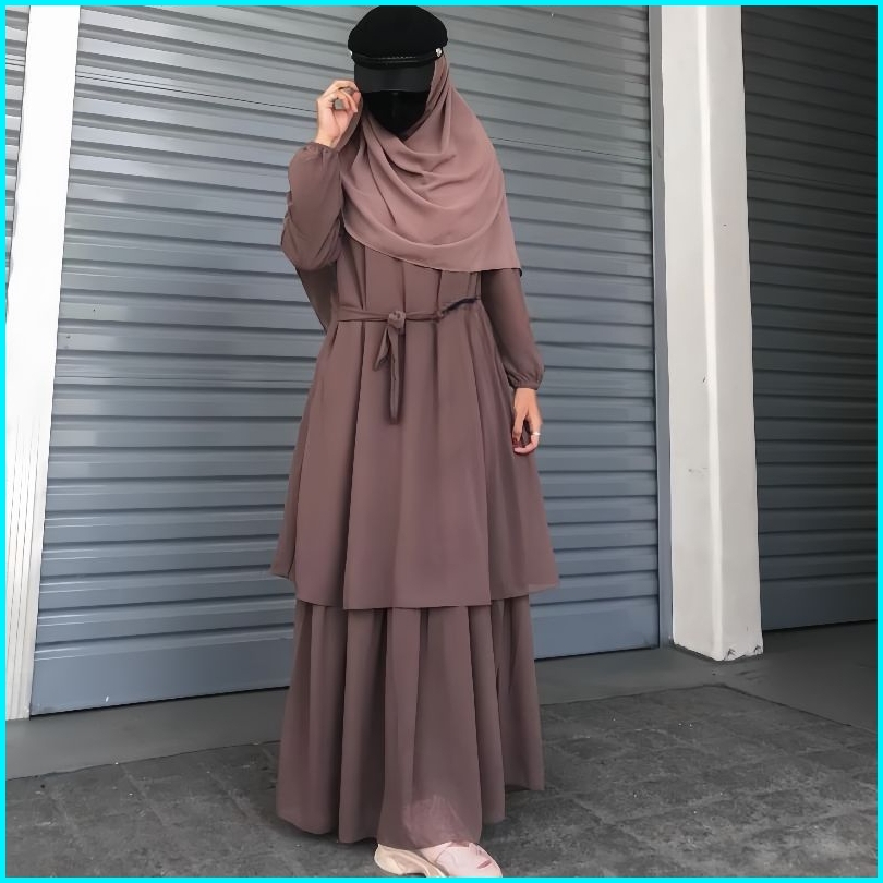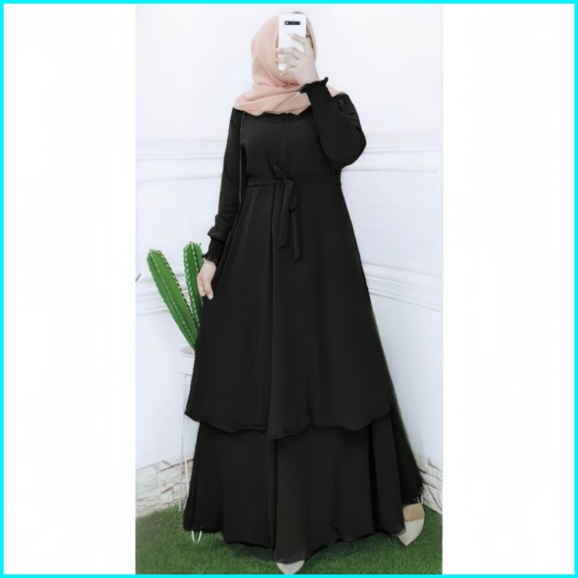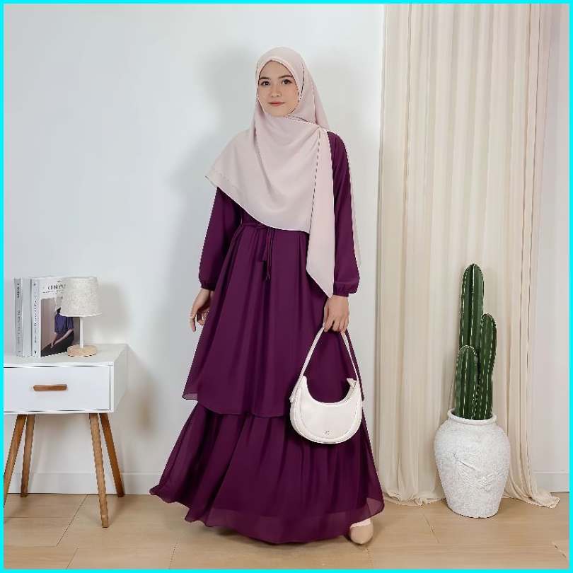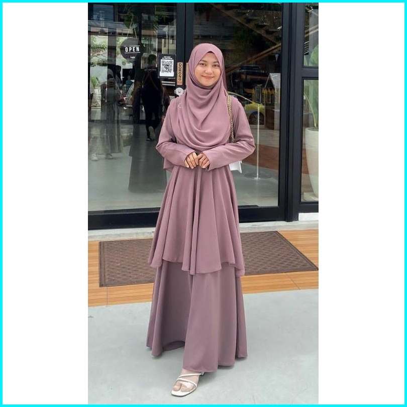 Gamis Malaysia Terbaru Anggun Polos Model Lebaran Wanita Dewasa - Ceruty Babydoll Full Puring