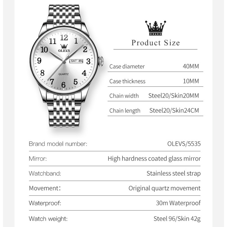 OLEVS Jam Tangan Pria Original Anti Air Cowok Rantai Stainless Steel Arloji Luminous Kalender Analog Quartz Bisnis Fashion Men WatchesReady Stock Mode 5535