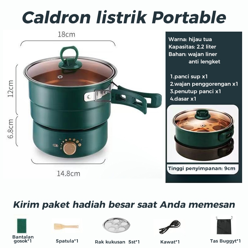 Panci Listrik Watt Rendah Serbaguna 2.2L / Kompor Elektrik Portable / Travel Electric Cooker / Kompor Listrik Multifungs