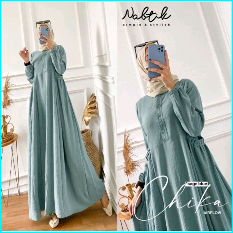 Gamis Sage Green-gamis Crinkle Premium