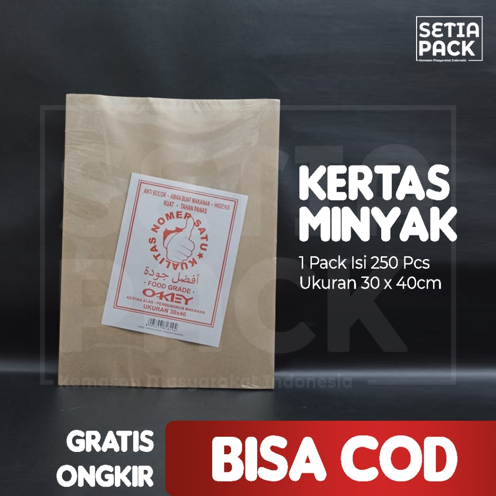 Kertas Minyak Nasi Coklat Bungkus Makanan Isi 250pcs Ukuran 30 x 40cm