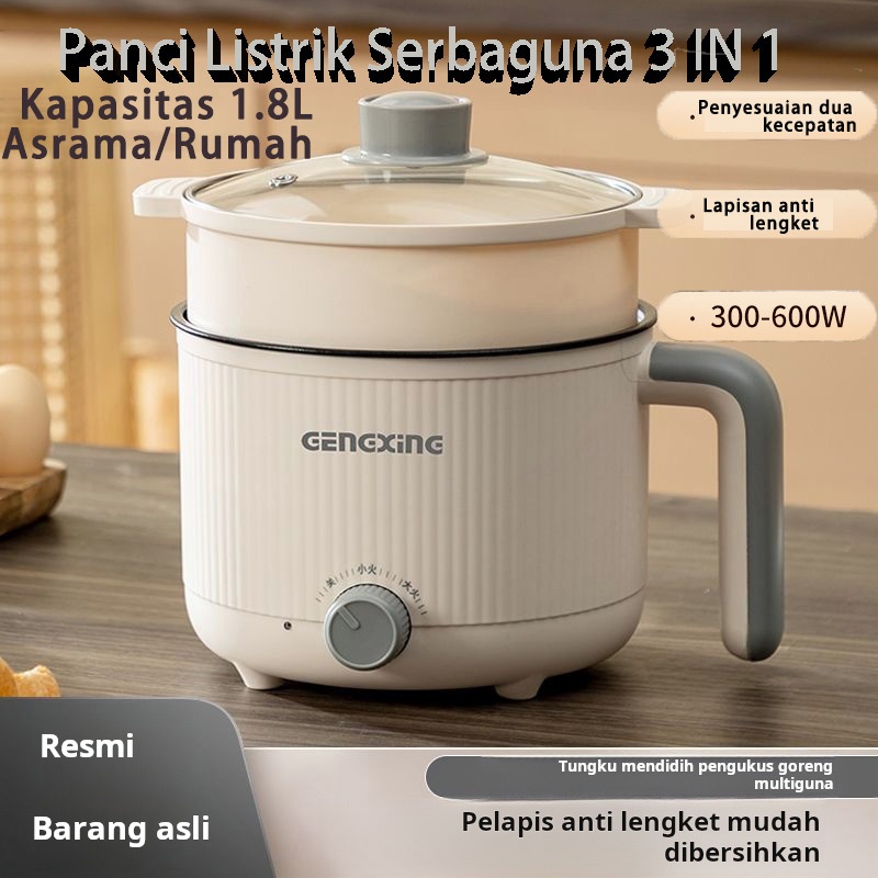 Promo Panci Listrik Serbaguna Penggorengan Portabel Anti Lengket / Rice Cooker Multifungsi 3 in 1