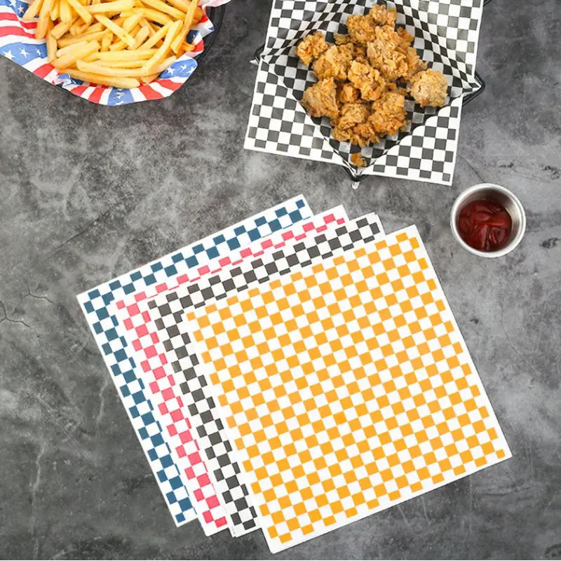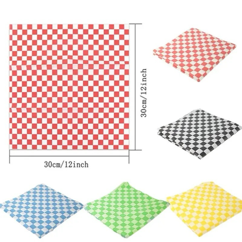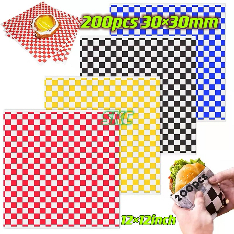 200Pcs 30×30mm Food Wrapper / Kertas Nasi Motif Grid / Kertas Burger