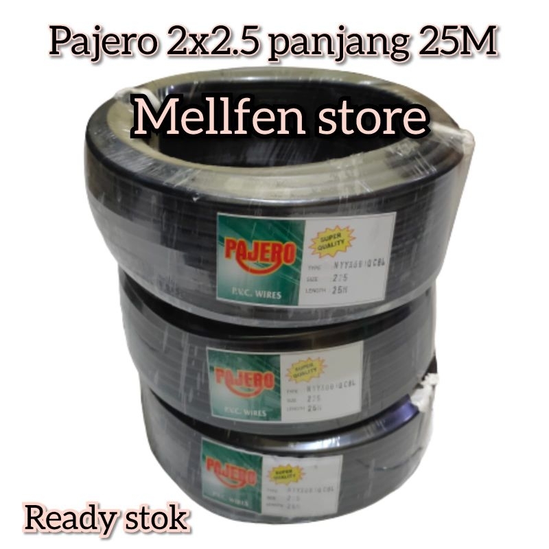 Kabel listrik PAJERO 2X2,5 25 Meter Hitam Kabel isi 2 serabut tebal