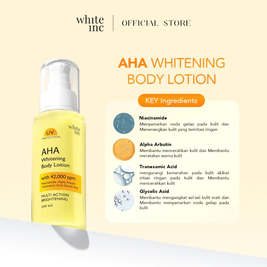 Paket Perawatan Tubuh WHITE INC AHA Body Serum & Body Lotion+Whitealpha Underarm Ampoule+Glycowhite Brightening Toner