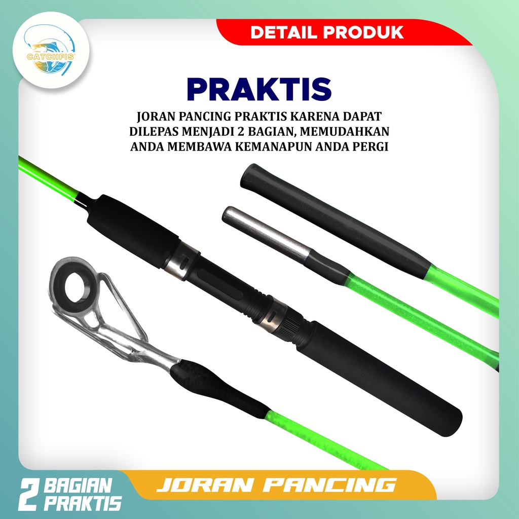 Catchfis - Joran Pancing Super Lentur Warna Hijau Dan Merah Panjang 120cm - 150cm Bahan Fiber Solid Cocok Untuk Mancing
