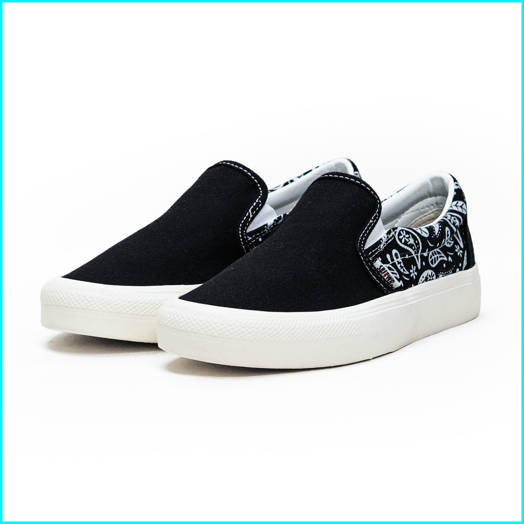 Saba Slip On Paisley Black White - Sepatu Sneakers Casual Pria Wanita Original 100 Psl 01