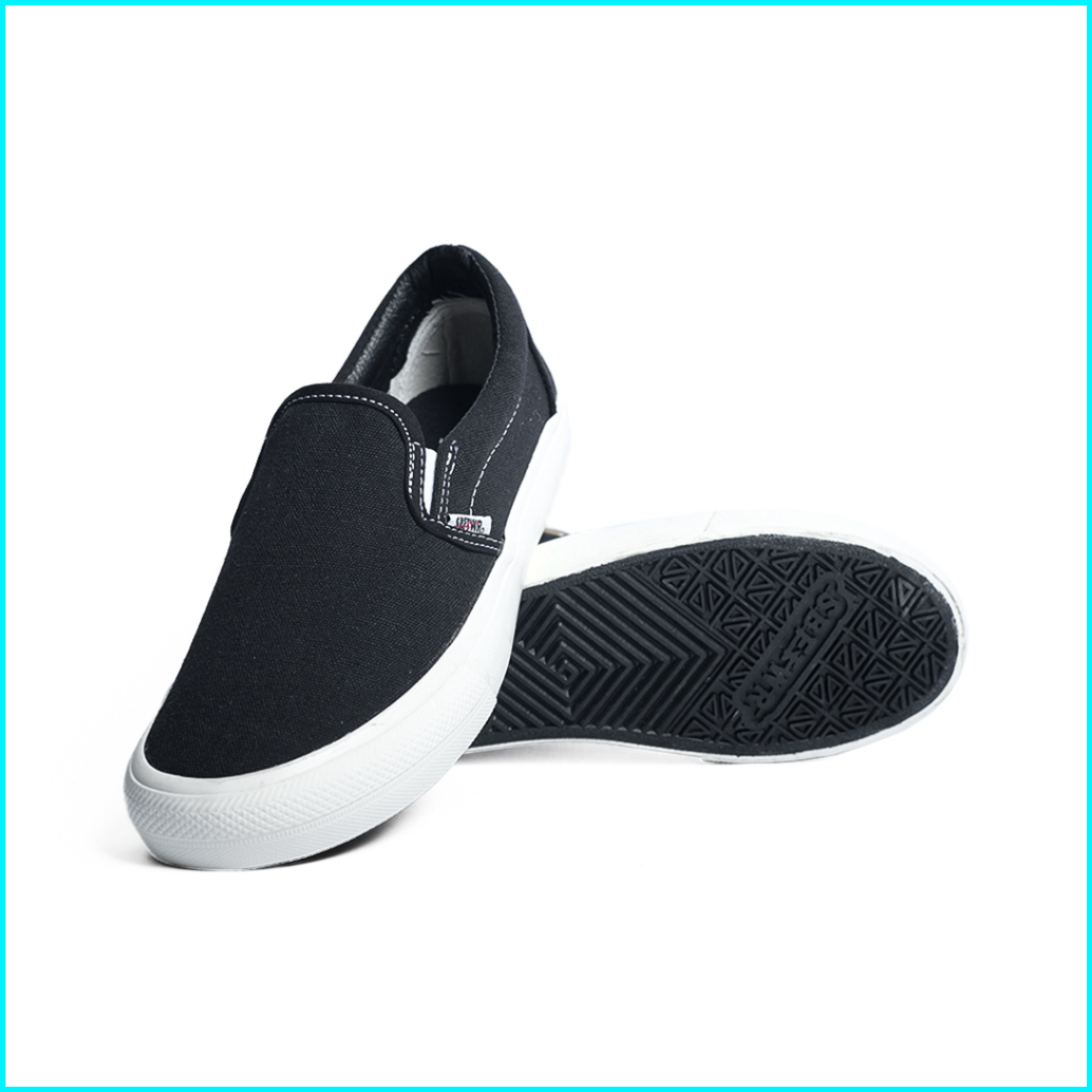 Saba Vintage Slip On Black White - Sepatu Sneakers Casual Pria Wanita Original 100 Vtg 01
