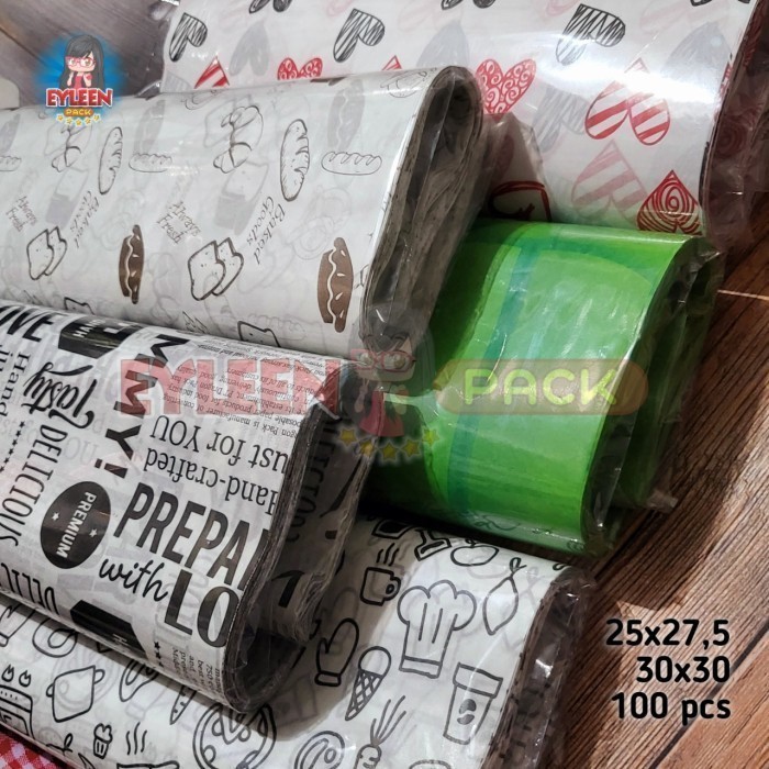 Kertas Bungkus Nasi Motif Laminasi Food Wrapper Anti Lengket 100 pcs
