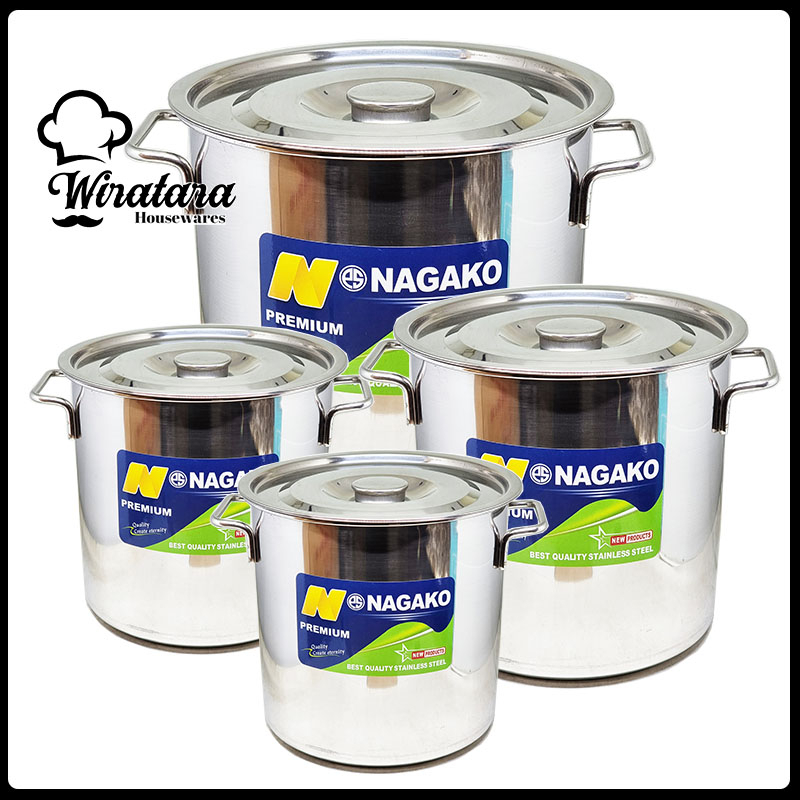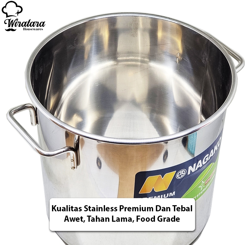 Nagako Panci Stainless 50Liter Tebal Premium Tutup Stock Pot Masak Tong Air Stenlis Panci Rebus Mie Besar Jumbo