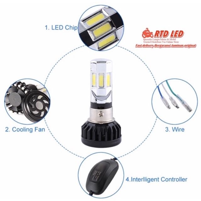 Lampu Led RTD Motor 6 Sisi M02E 35 Watt Original H4 H6 Supra Beat Vario Vixion Cb150R