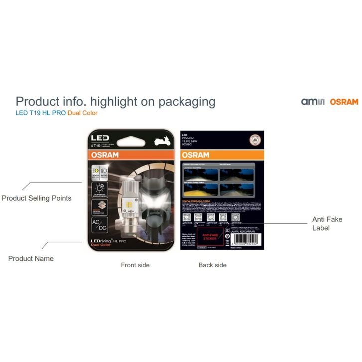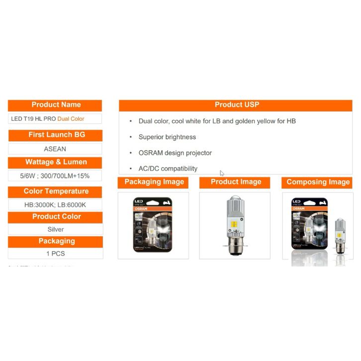 LAMPU DEPAN LED OSRAM T19 PRO HL PRO 2 WARNA PUTIH KUNING