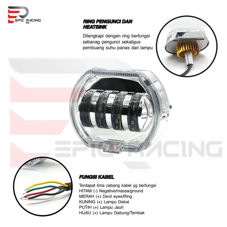 Lampu utama Biled mode Projie Biled proji 4 lensa 8D plus shroud 4.5 inc Projie Billed 4 lensa