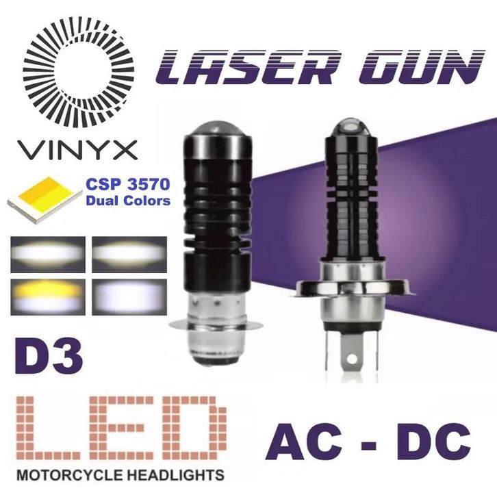 Lampu Utama LED Laser Gun Motor Lasergun H6 H4 AC DC VINYX CSP D2 D3 D2A Mobil Hi Lo 2 Warna Bebek