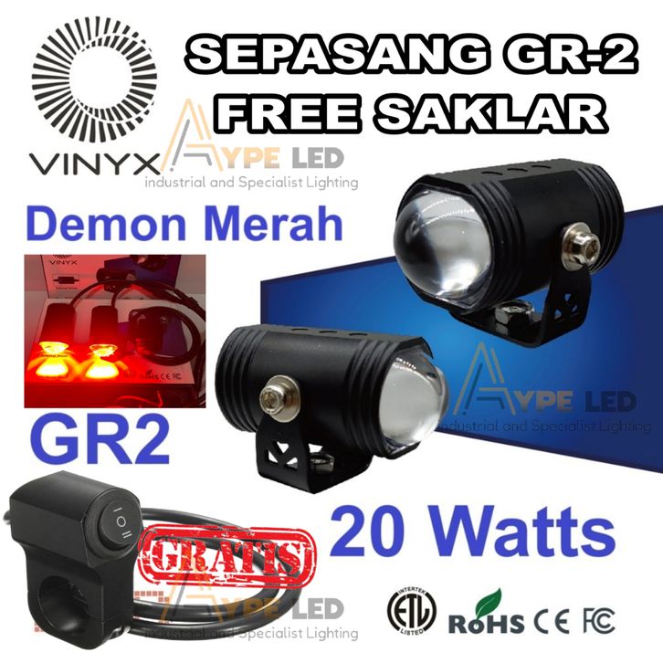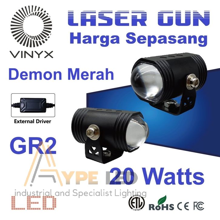 LAMPU TEMBAK VINYX GR2 D2 MINI SOROT PLUS DEVIL EYES LED LASER GUN 20 WATTT 2 WARNA LAMPU TERBARU