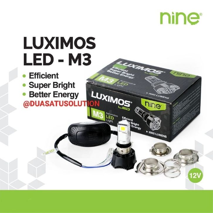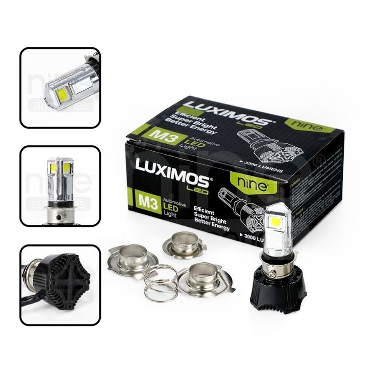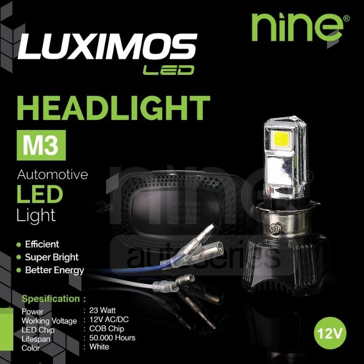 LAMPU LED UTAMA MOTOR 3 SISI H6 H4 H7 HI LOW NINE LUXIMOS M3 SUPER BRIGHT PUTIH