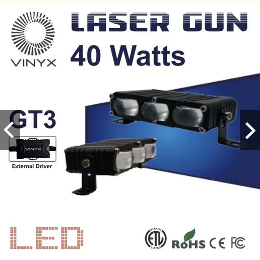 Lampu Tembak Vinyx GT3 Sorot LED Laser Gun D3 Stang Motor Grill Mobil Lasergun 40 Watt 2 Warna Putih
