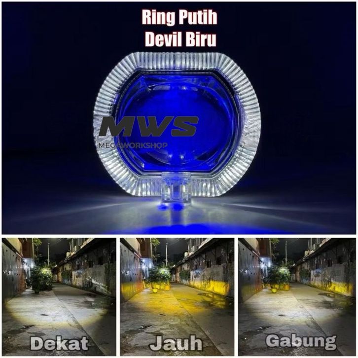 Mws - Projie Biled Cut Off Mini 2.5 INC D2 D3 Jauh Dekat 30watt Waterproof Plus Devil Ala Biled PNP
