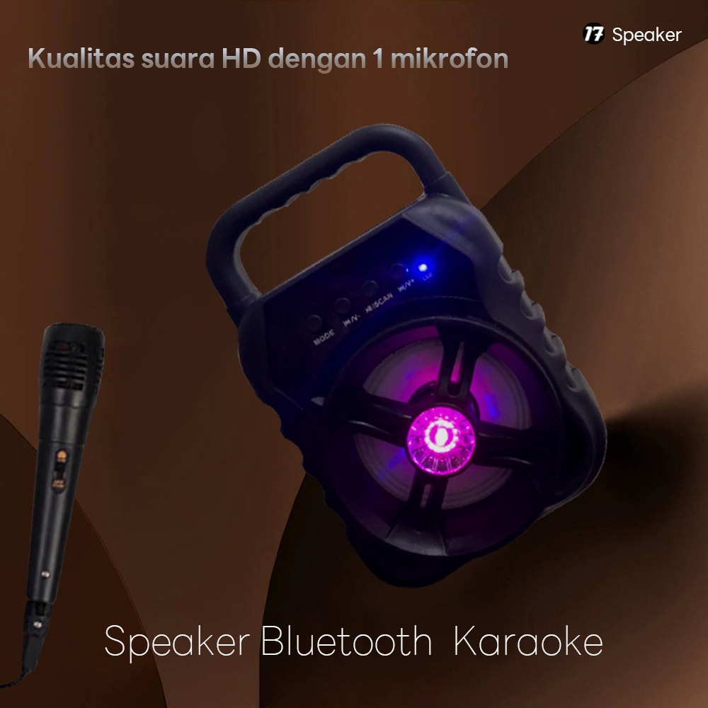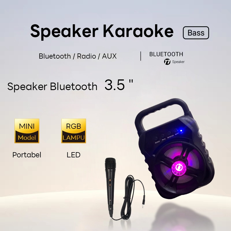 ELEKTRA SHOP Speaker Bluetooth Portable mini Speaker Karaoke LED 3.5" super bass Free Microphone murah
