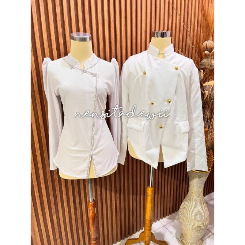Set Kebaya Janggan Puffy + Beskap Solo, Nuansa Putih