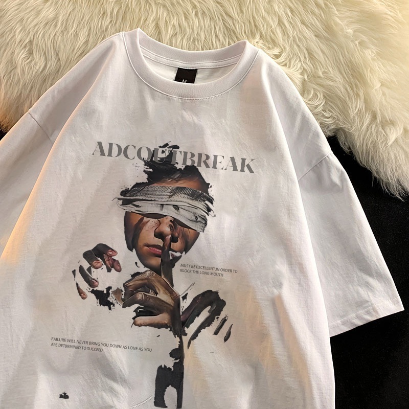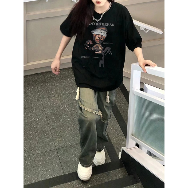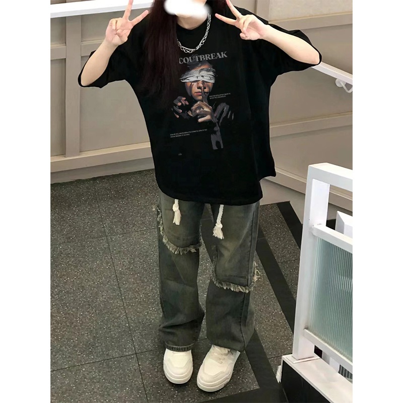 Po floret Kaos Oversize Lengan Pendek T-Shirt ADCOUTBREAK Katun Murni Korean Style Wanita Top