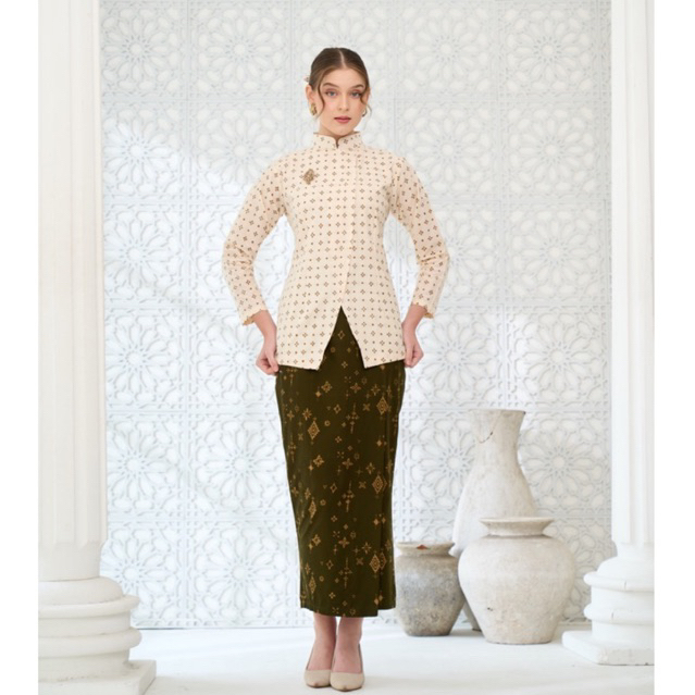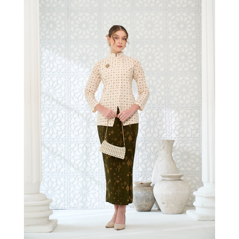 Kebaya Janggan Modern Blouse Batik Cap Wanita Blouse Kondangan Seragam Batik KantorKebaya Bridesmaid Hijau Olive