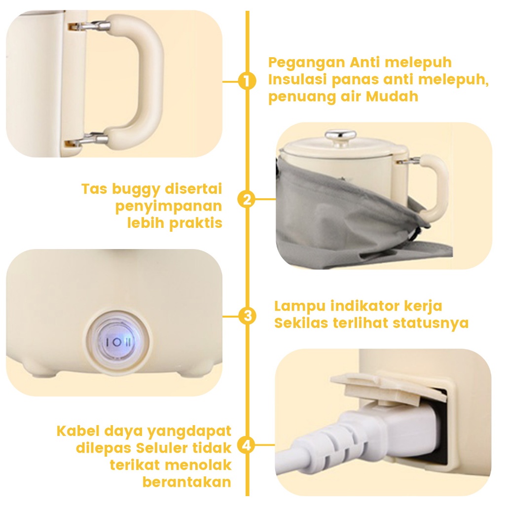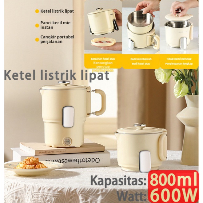 Ketel Air Multifungsi Portabel Lipat / Stainless Teko Listrik 600 Watt 0.8 Liter / Pemanas Air Electric Kettle/ panci li