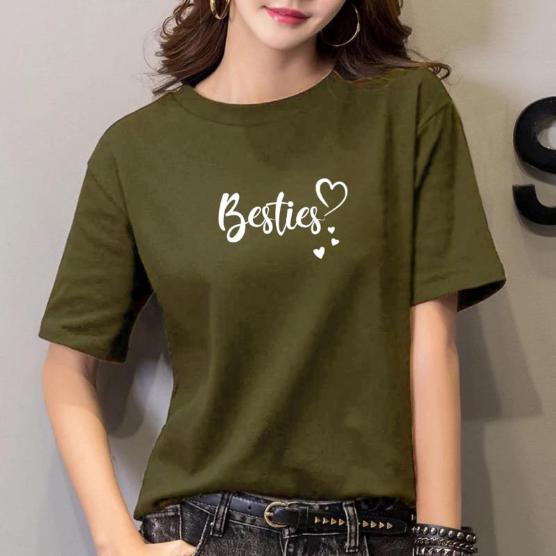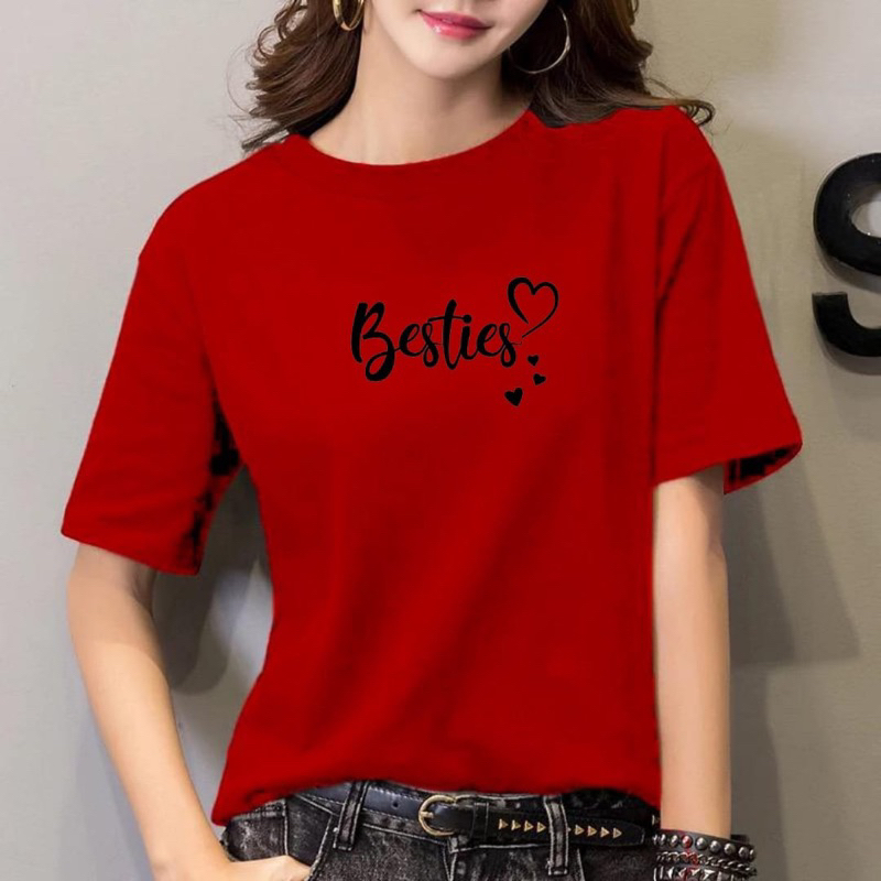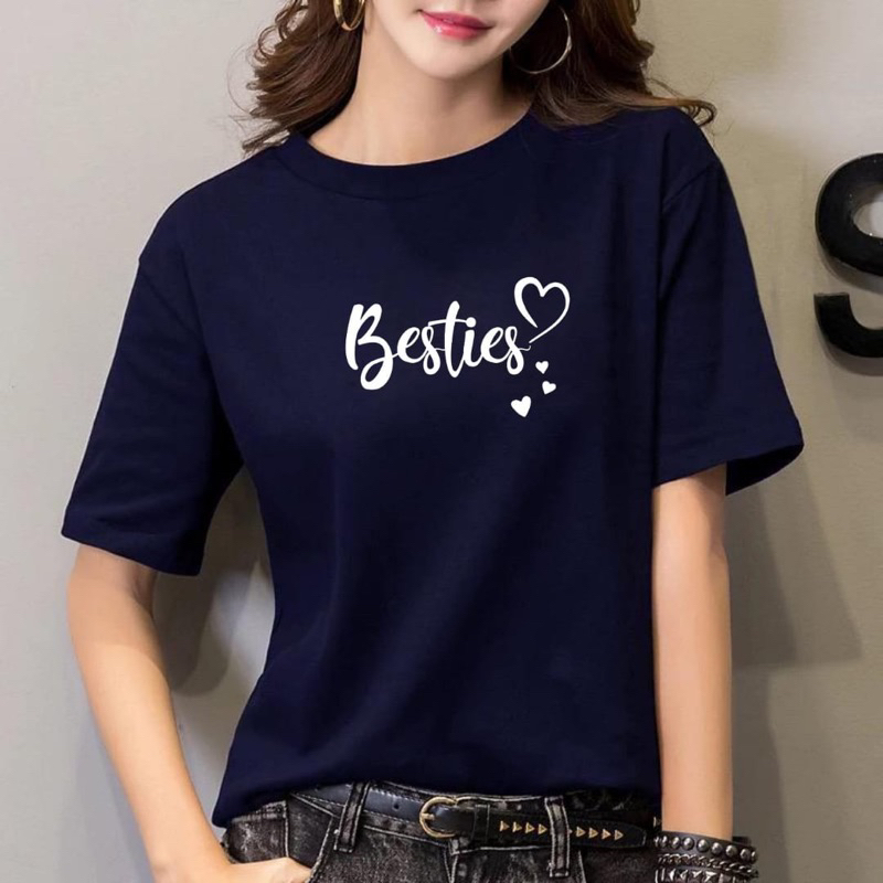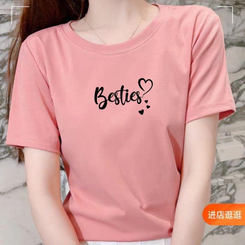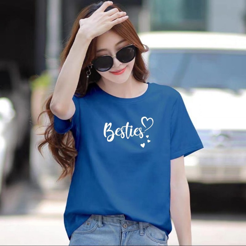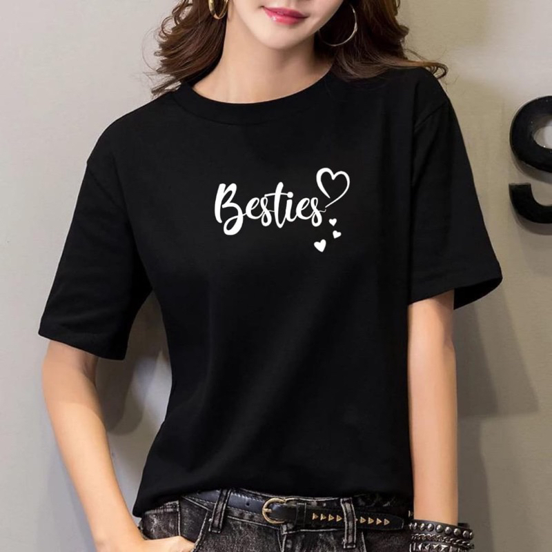 Kaos oblong Wanita ll kaos distro lengan pendek Size S M L XL XXL Sablon motif BESTIE berkualitas Baju lengan pendek dewasa