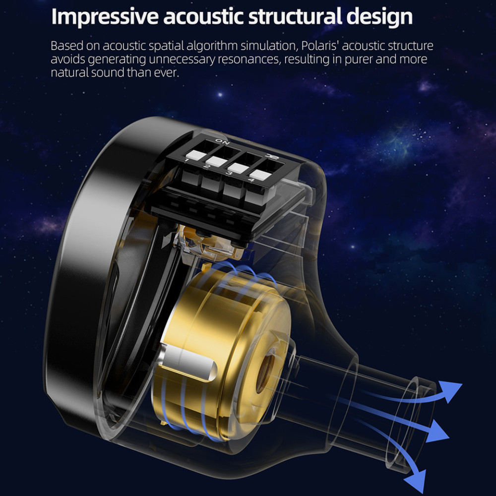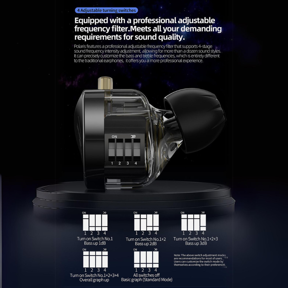 CCA Polaris In Ear Dual Cavity Dynamic Driver with 4 Tuning Switch Earphone IEM with Mic