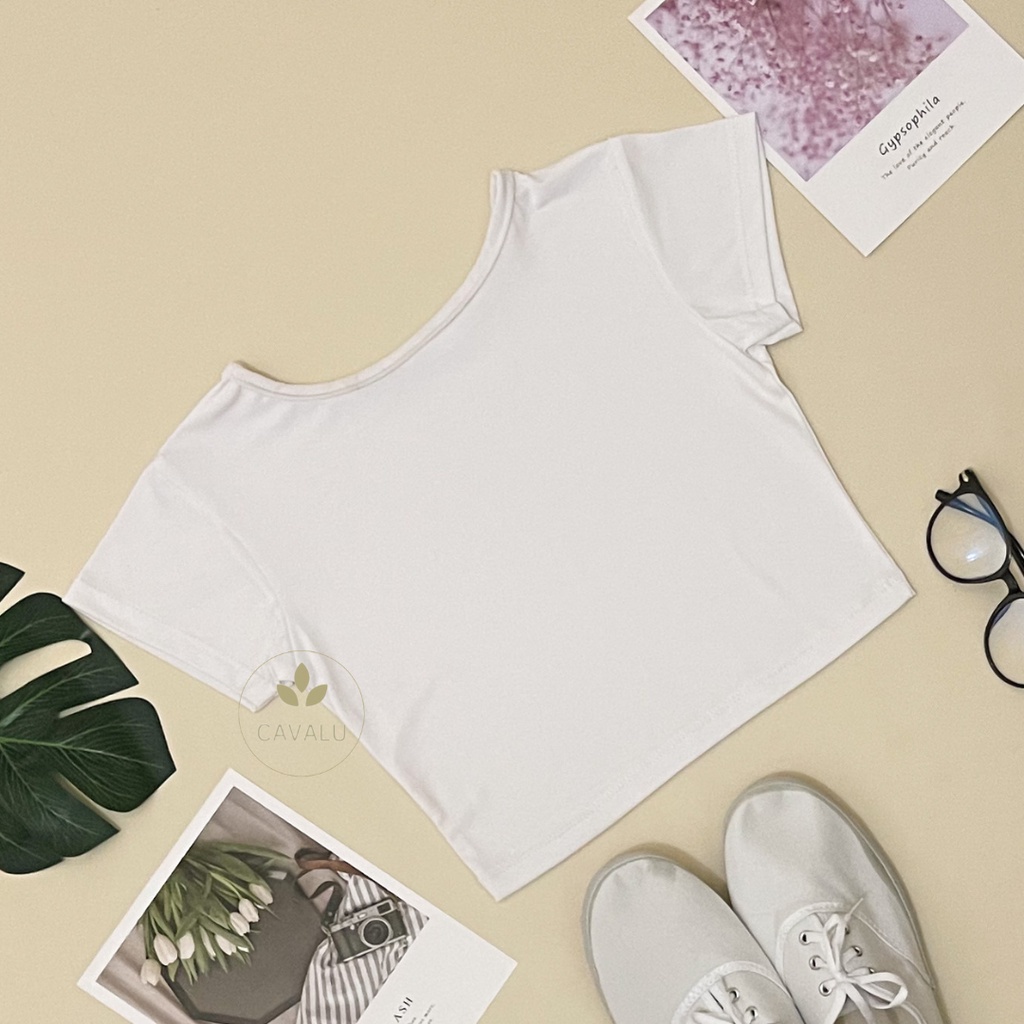 CAVALU Basic Korean Crop Top Kaos Polos Wanita Crop Tee Korea Casual Baju Atasan Wanita 052