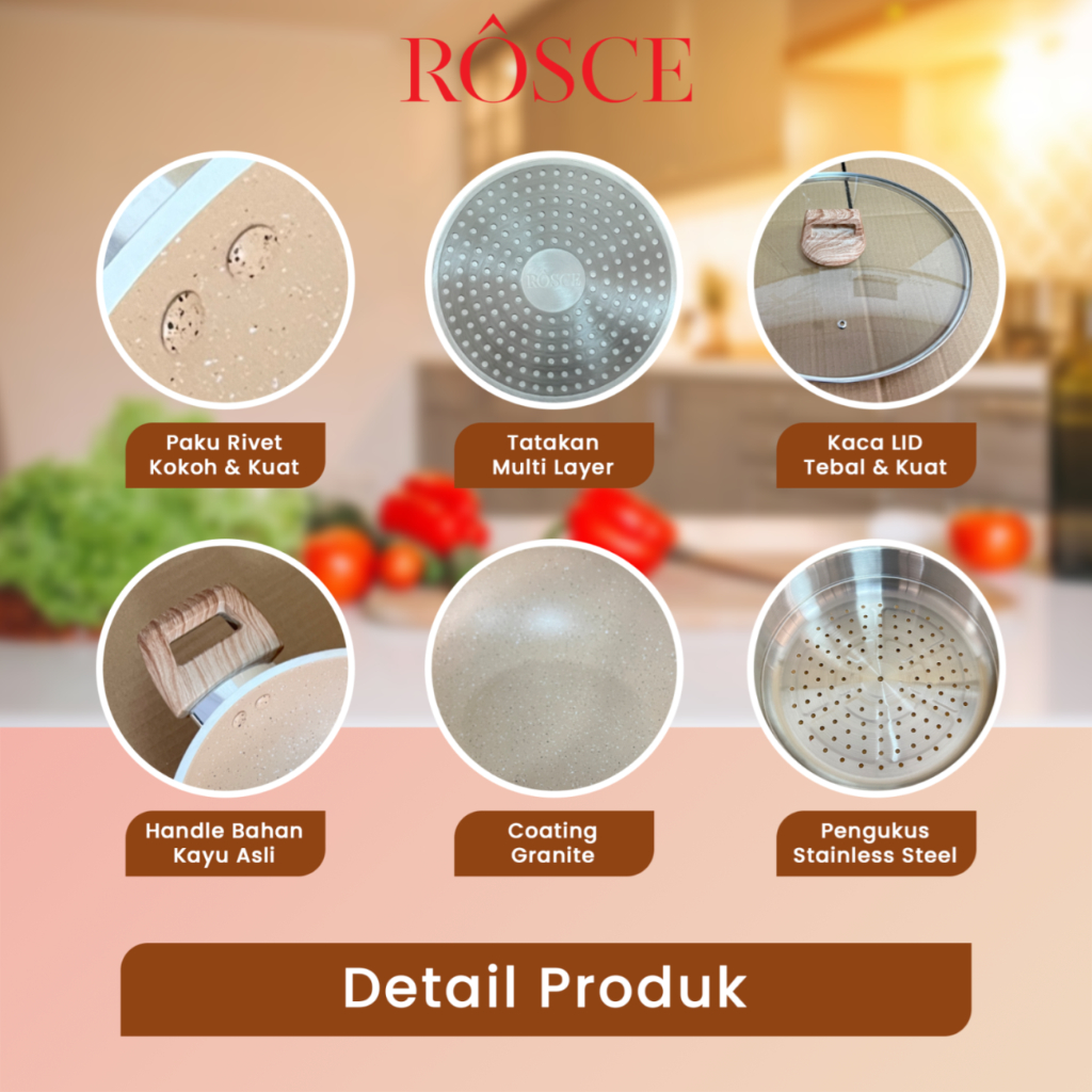 PROMO WAJAN SET JUMBO WOK PAN 32CM Steamer ROSCE panci granit marble kukusan stainless steel food grade