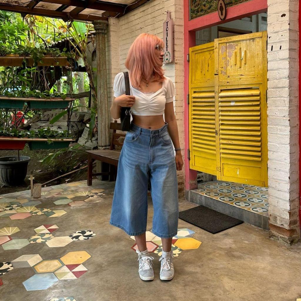 Jort Pants Jeans Pria Wanita 3 4 Denim Stylish