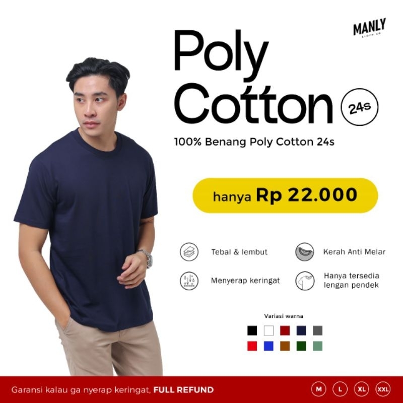 KAOS POLOS POLYCOTTON 24s 100 PERSEN Polyester Premium dengan Handfeel Katun