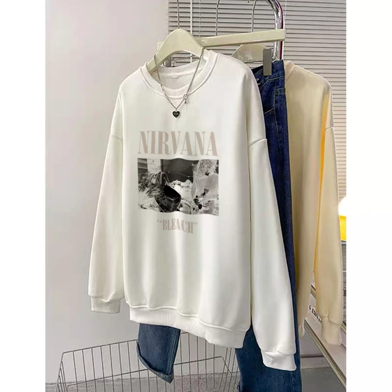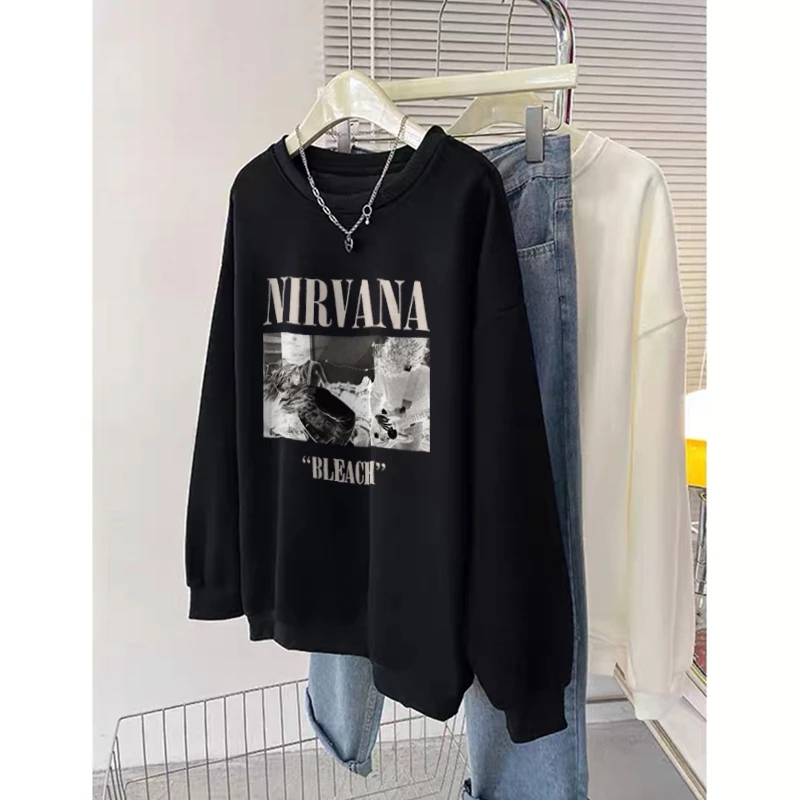 Sweater Cewek A0854 Series Retro Hiyam Oversized Round Neck Motif Nirvana Premium Sweater Lengan Panjang Terlaris Murah