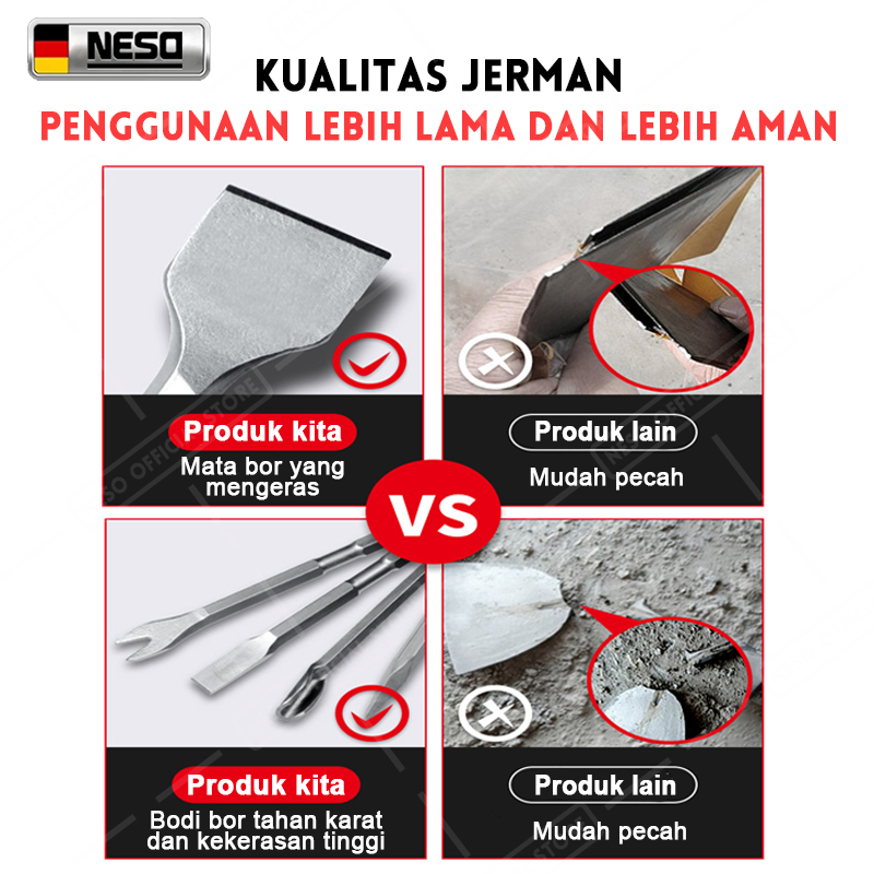 Neso Mata Bor Pahat Beton SDS Set Pahat Plus Flat Chisel Bobok Beton Tembok 14 x 250 mm 17 x 280 mm