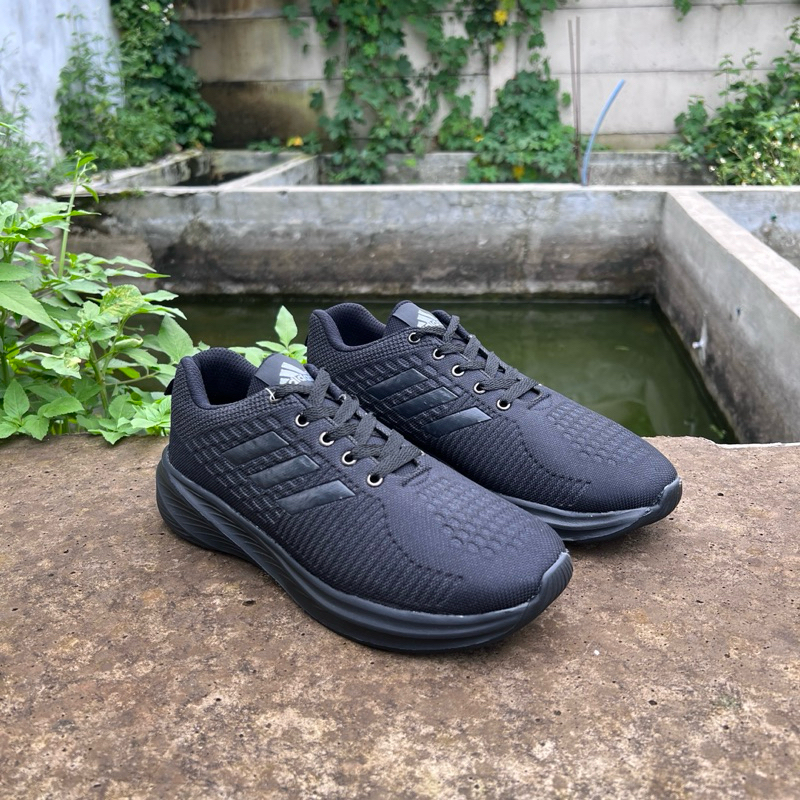 Sepatu JUMBO ADIDAS Full Black – Sepatu Big Size Hitam Polos 39 40 41 42 43 44 45 46 Bisa Bayar Di Tempat 01