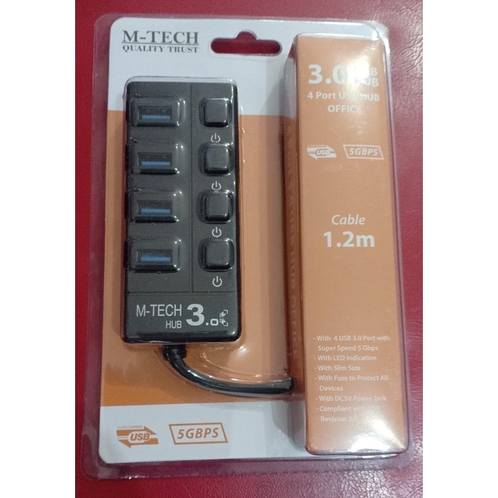 M-TECH HUB USB 3.0 Panjang Kabel 1.2M ON-OFF 7 Port 4 Port
