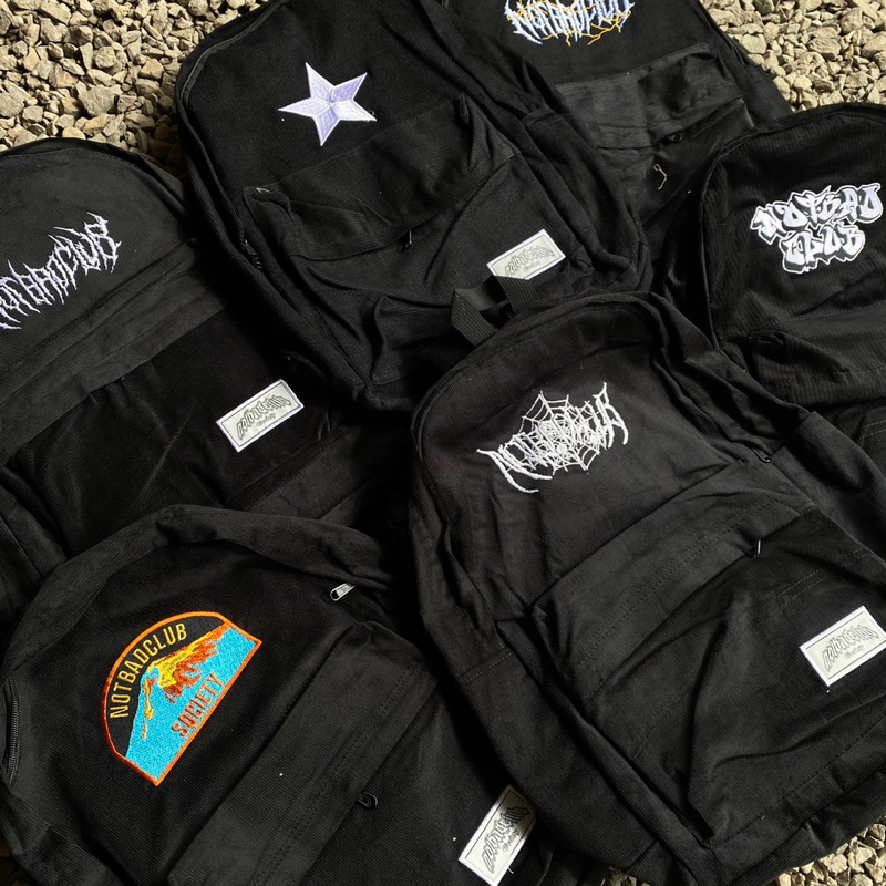 TAS RANSEL CORDUROY BAGPACK STARS Backpack Tas Sekolah Pria Wanita Basic Gendong Distro Black Hitam Bintang