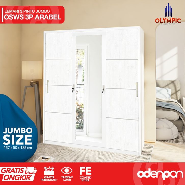 OLYMPIC Lemari Pakaian Baju 3 Pintu Besi Besar Jumbo Minimalis OSWS 3P