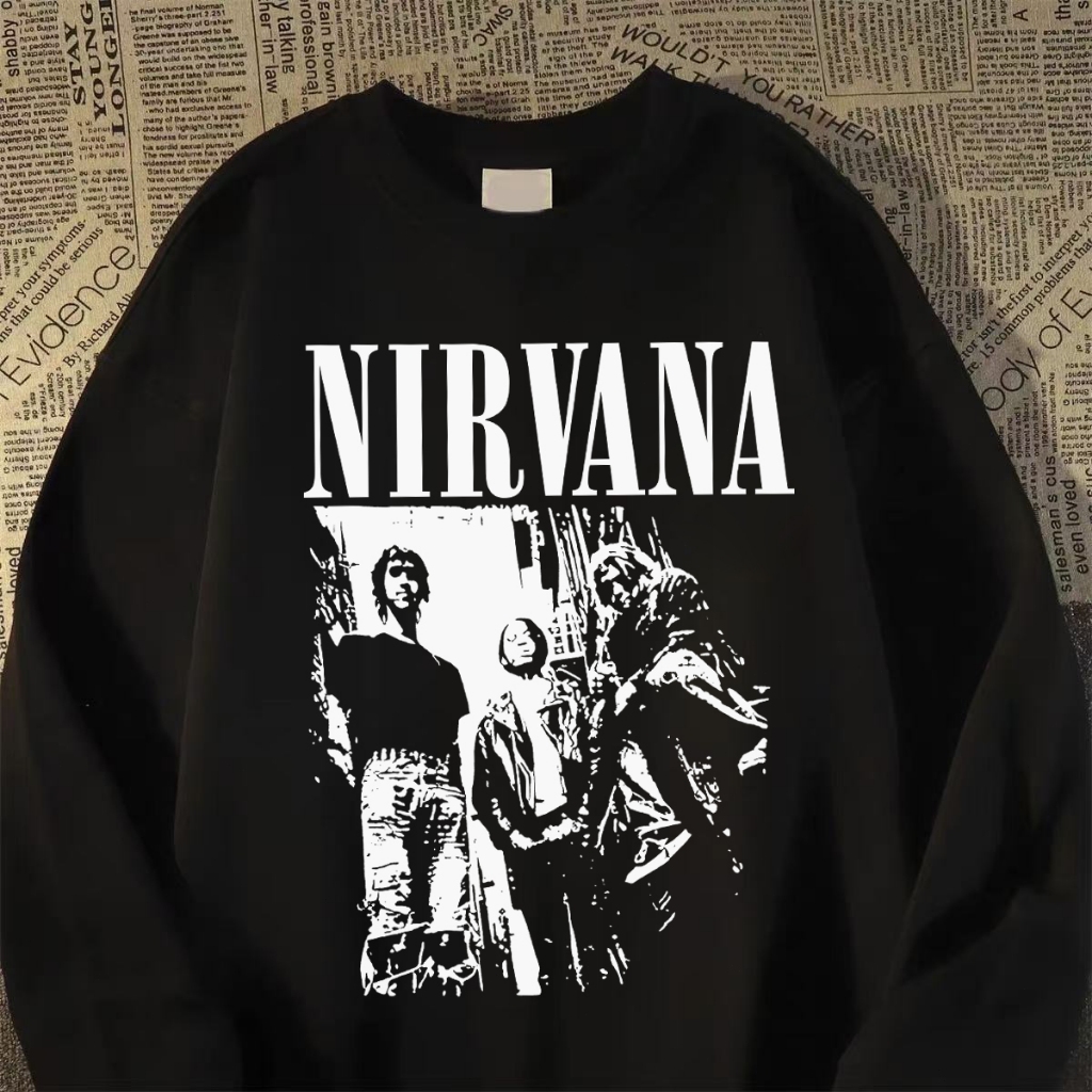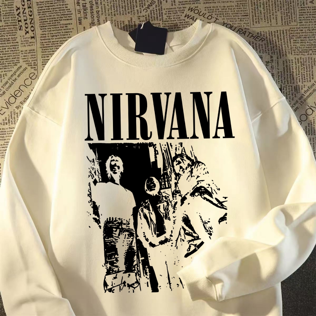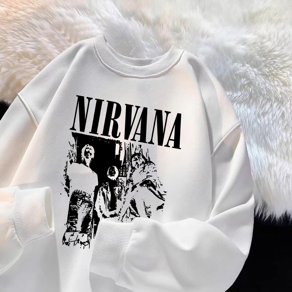 Korean Sweater Oversize Wanita Cotton Cetakan Band Rock Amerika NIRVANA Sweater Oversize Cewek Cowok Bahan Cotton 100 PERSEN Baju Couple Pasangan