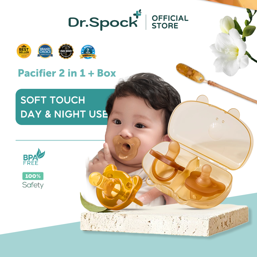 Dr.Spock Dot Bayi Empeng Bayi 0 6 Bulan BPA FREE Dot Bayi Dengan Rantai Dan Kotak Silikon SP01