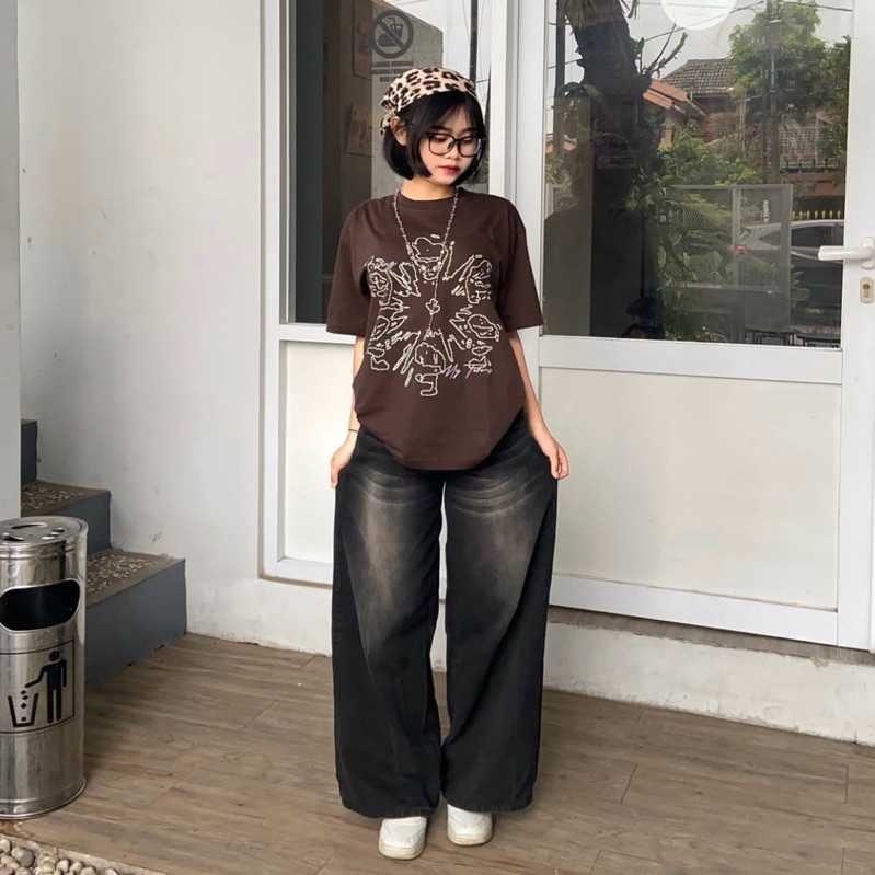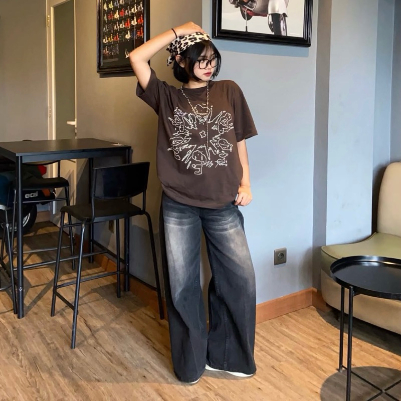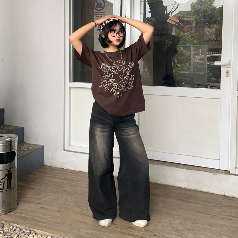 Celana Jeans Wisker Pria Wanita Unisex Wide Leg Lebar Gombrong Skena Black Wisker pria loose fit jumbo big keren Bahan Denim Celana jeans gombrong Korean style