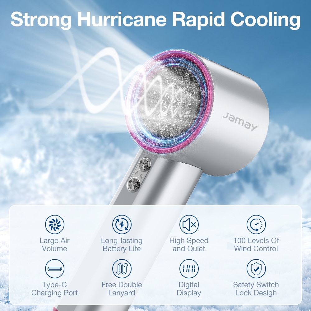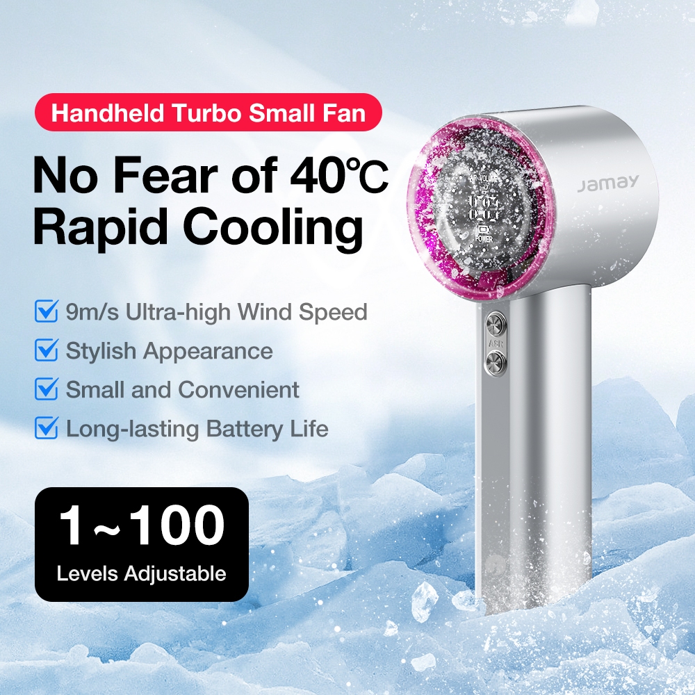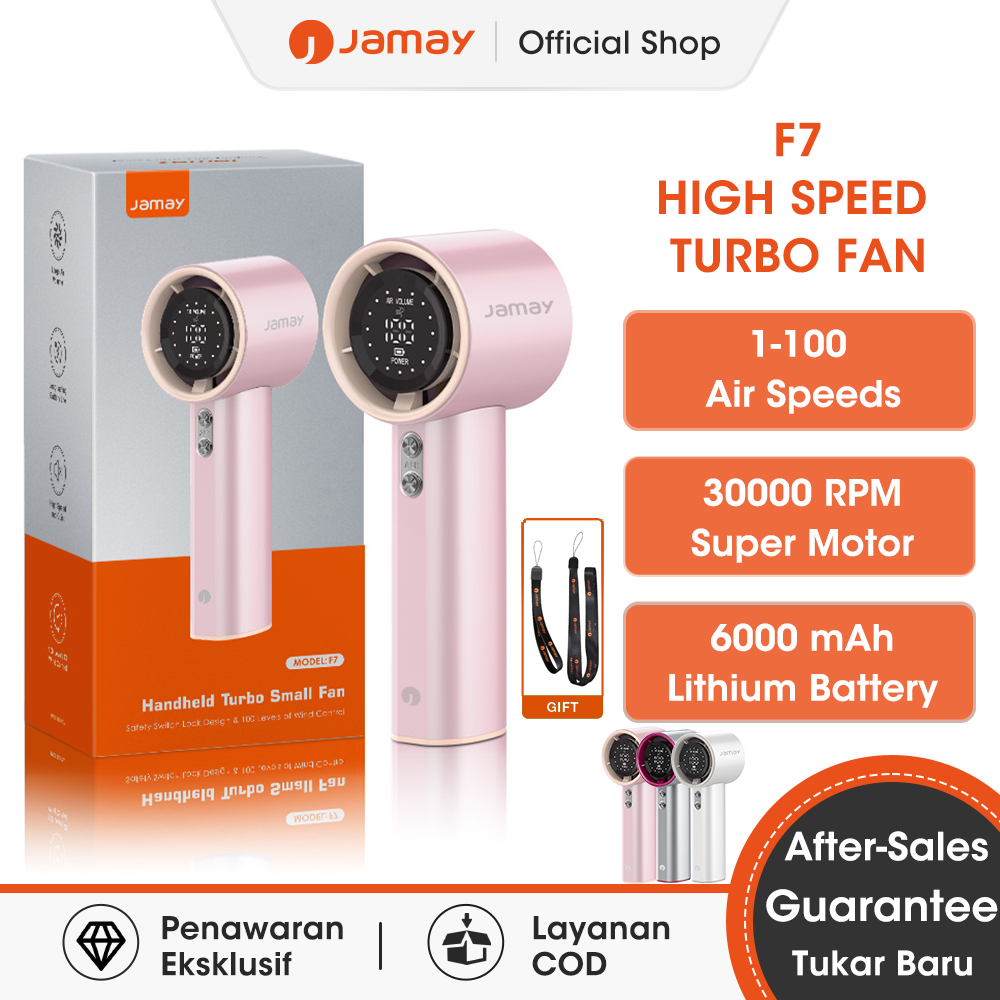 Jamay Mini Portabel High-Speed Kipas Strong Wind 100 Gear 6000mAh Wind Speed 30000rpm Handheld Kipas Angin Digital F7